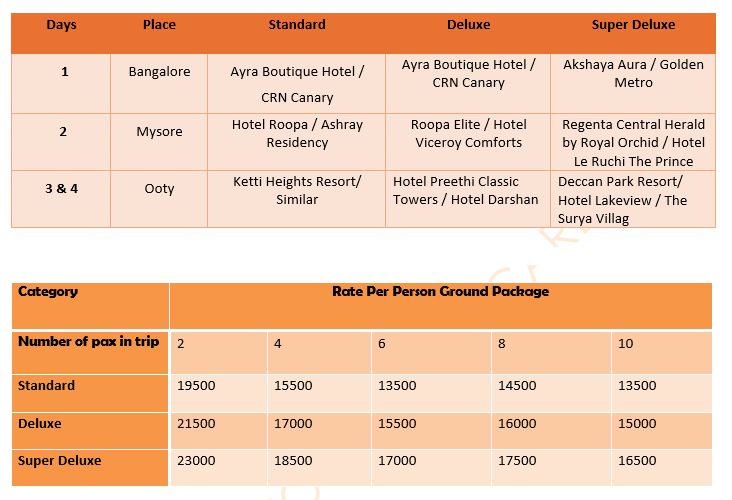 Bangalore – Mysore – Ooty Tour Itinerary