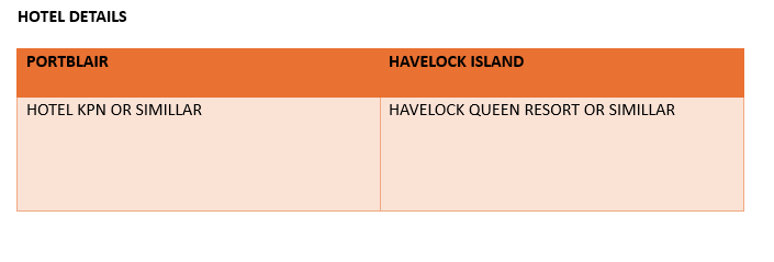 - Arrival at Port Blair Airport. Meet & greet by our representative and transfer to the hotel.