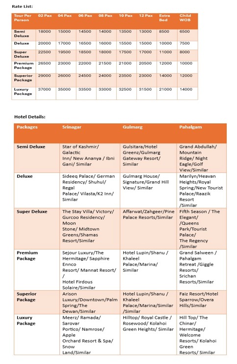 - 03 Nights stay in Hotel at Srinagar