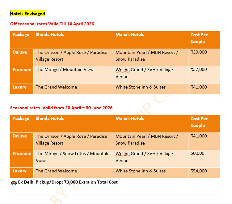 ✔ All sightseeing as per itinerary